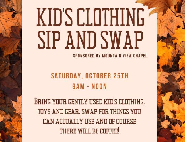 Bring your gently used kid's clothing, toys, and gear, and swap for things you can actually use! And of course, there will be coffee! October 25th, at Good Hope Church, starting at 9:00AM.