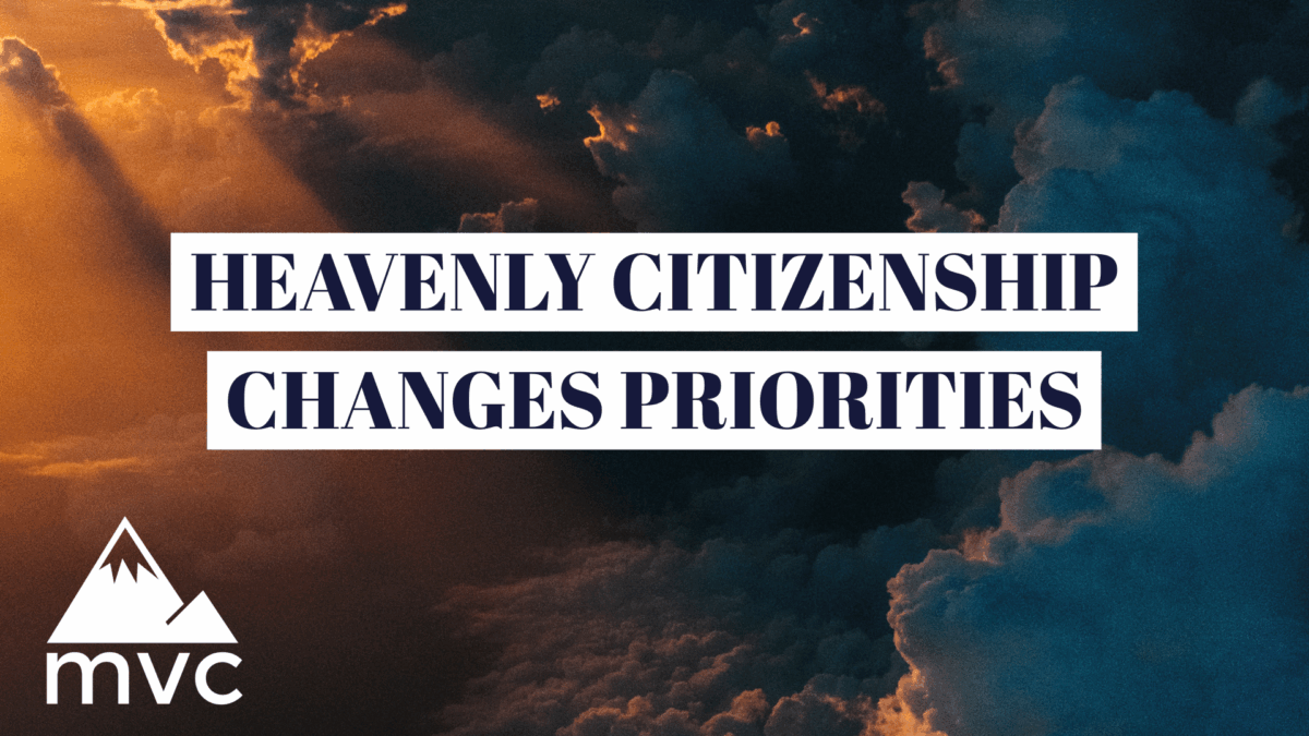 February 28, 2021Published by Mountain View Chapel on February 28, 2021Categories SermonsHeavenly Citizenship Changes PrioritiesHow does heavenly citizenship change your priorities?