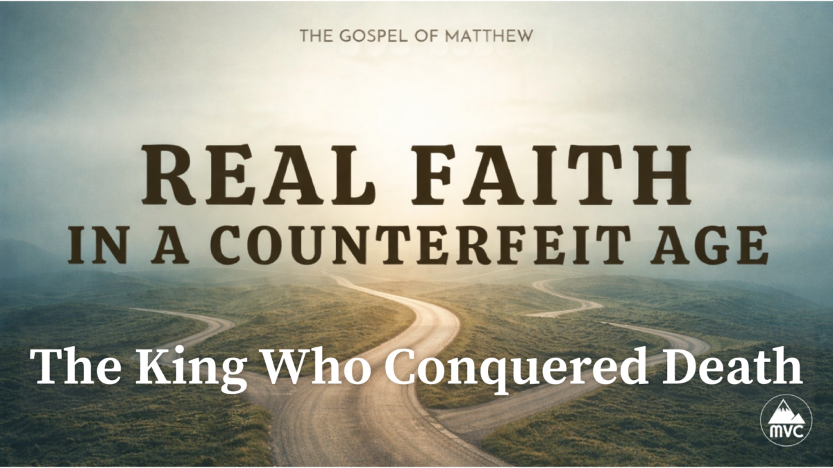 April 5, 2026Published by Mountain View Chapel on April 5, 2026Real Faith in a Counterfeit Age – Week 6: The King Who Conquered DeathJesus finds the perfect way to say, “I am the expected King, but not like you expect.”