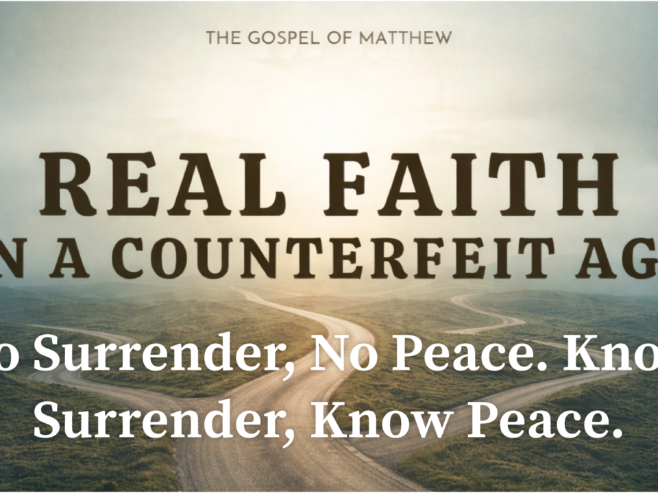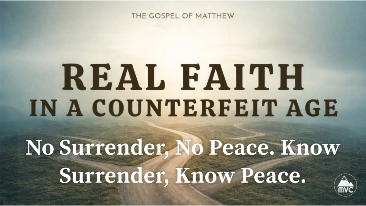 April 12, 2026Published by Mountain View Chapel on April 12, 2026Real Faith in a Counterfeit Age – Week 7: No Surrender, No Peace. Know Surrender, Know Peace.You do not find life by taking control, you find life by surrendering to God.